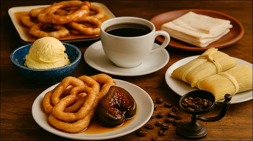 Estos anillos de masa frita, acompañados de miel de panela, son ideales con un café de notas frutales y ácidas. La dulzura del pristiño se equilibra perfectamente con la acidez del café. Además, los pristiños son un postre tradicional que se disfruta especialmente durante las festividades navideñas en Ecuador, lo que los convierte en una opción nostálgica y deliciosa.