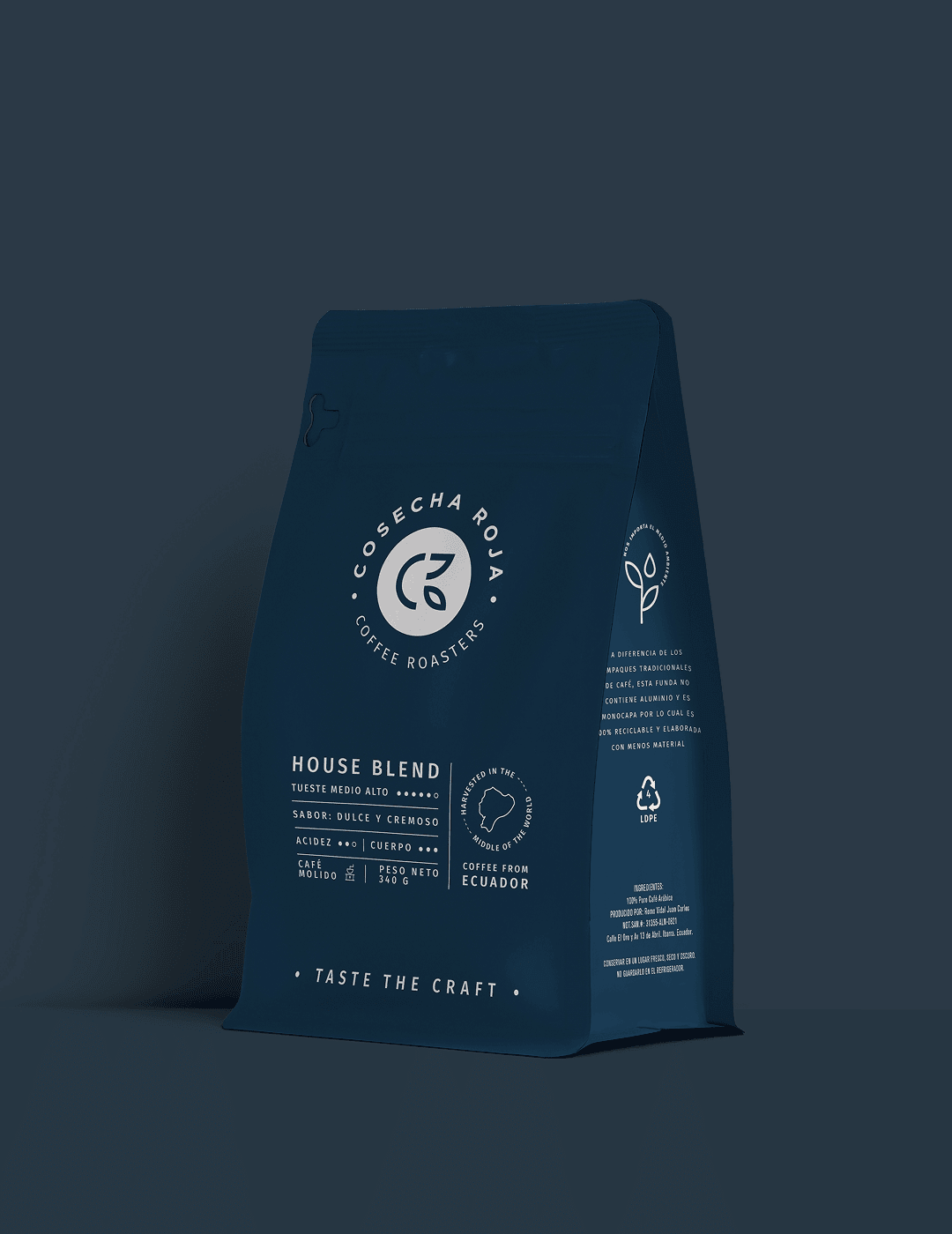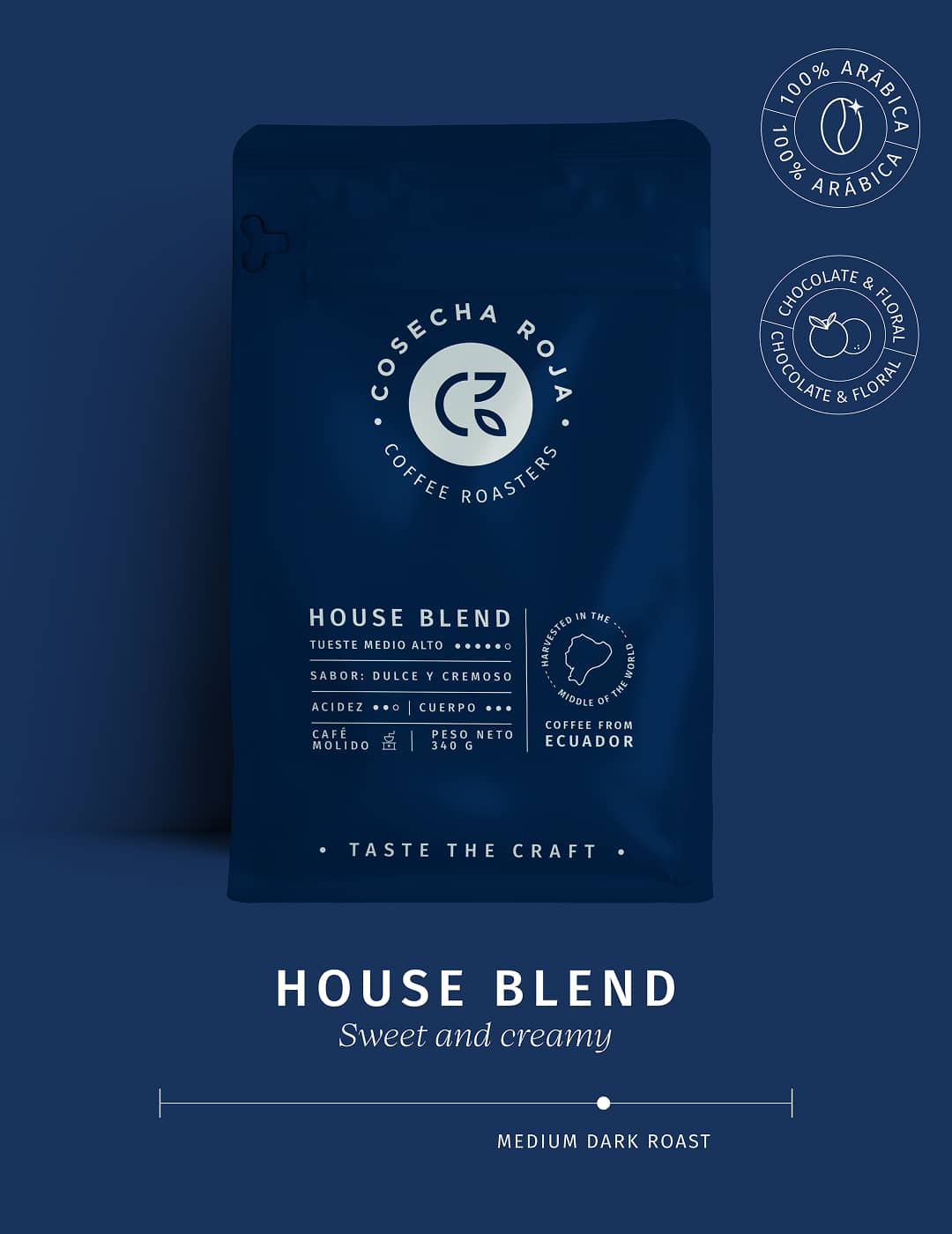 House Blend de Cosecha Roja es una mezcla exclusiva de café molido 100% arábigo, elaborada con granos seleccionados de origen ecuatoriano. De tueste medio-alto, este café ofrece una taza dulce y cremosa, con una acidez media (2/3) y un cuerpo completo (3/3), perfecta para quienes disfrutan de un perfil equilibrado pero con carácter.